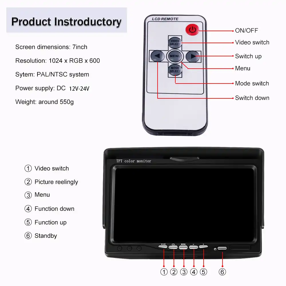 7-Inch TFT LCD widescreen wireless monitor--With high resolution image full color display and low power. Monitor System Waterproof 9.